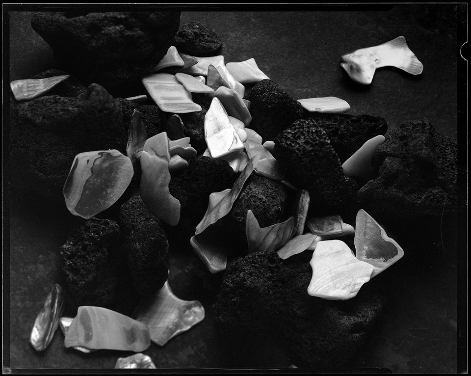 I finished my Large Format class with a three-image mini-project. We could do anything we wanted with the assignment — any subject, any treatment, any output. I had just seen some older work by Carl Chiarenza, who creates tabletop abstracts for black and white photographs, and that was my inspiration for this work. The project satisfies many of my own predilections – close up/macro, tabletop, abstract, natural items.